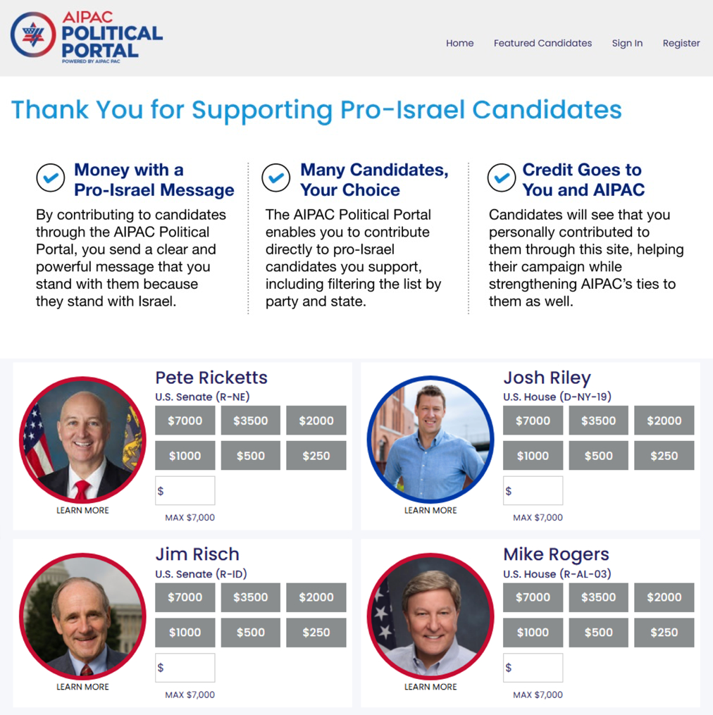 AIPAC lists Josh Riley as one of its core allies among freshman US House Democrats, and it’s raising money for Josh Riley to spend in the 2026 congressional election (see the image below from AIPAC’s fundraising page).